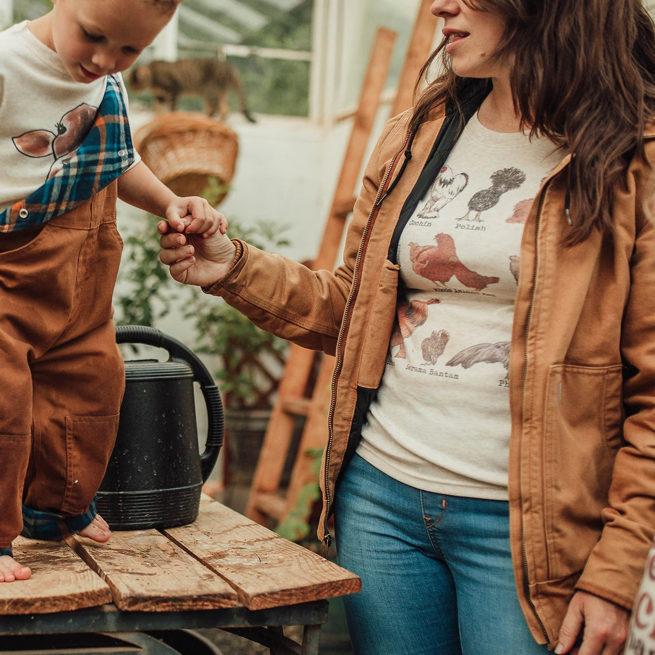 If you love chickens just as much as your kids, this shirt is for you. Sublimated on a polyester/cotton blend, the fabric is super comfortable and does not shrink the moment it is put in the dryer.