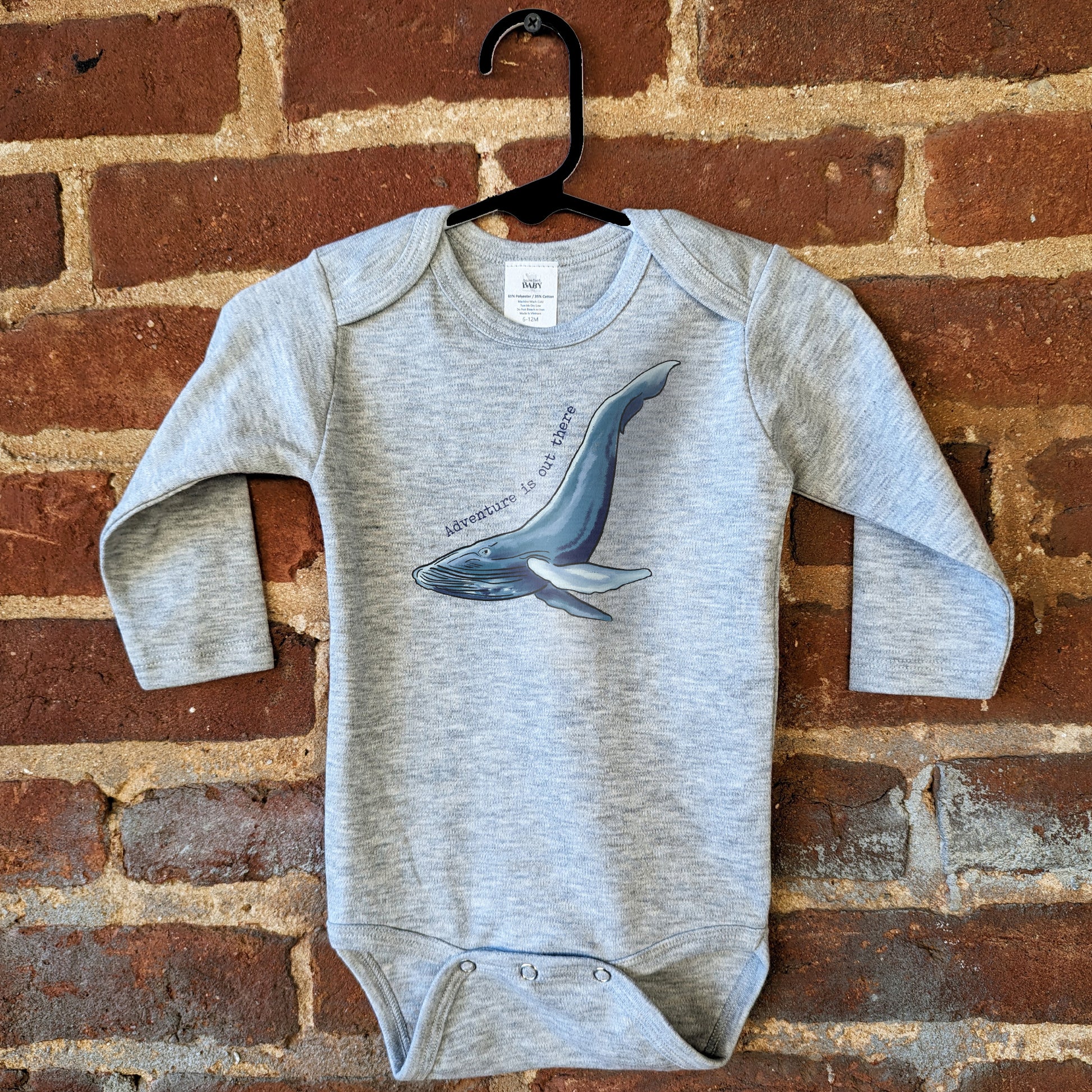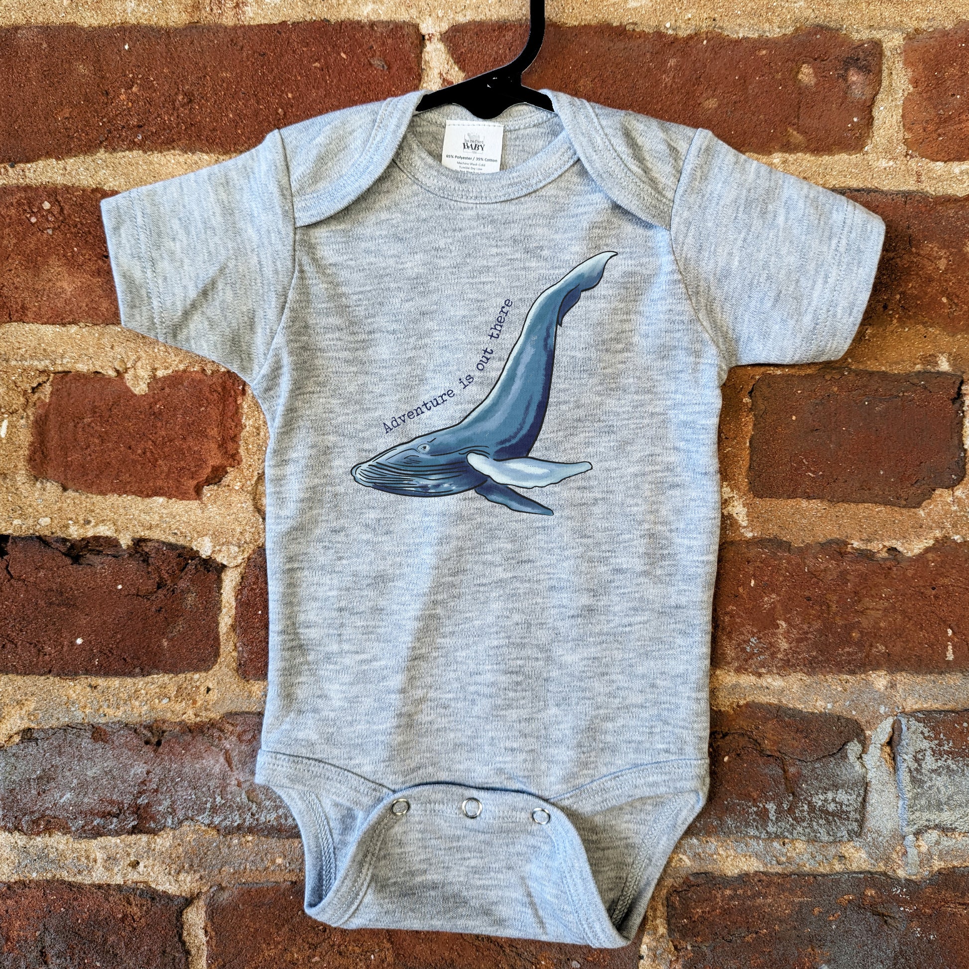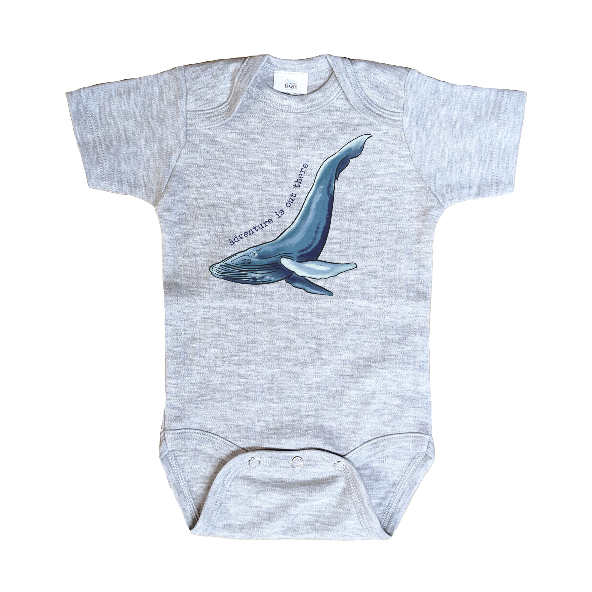 "Adventure is out there" WHALE Ocean Beach Grey Baby Body Suit