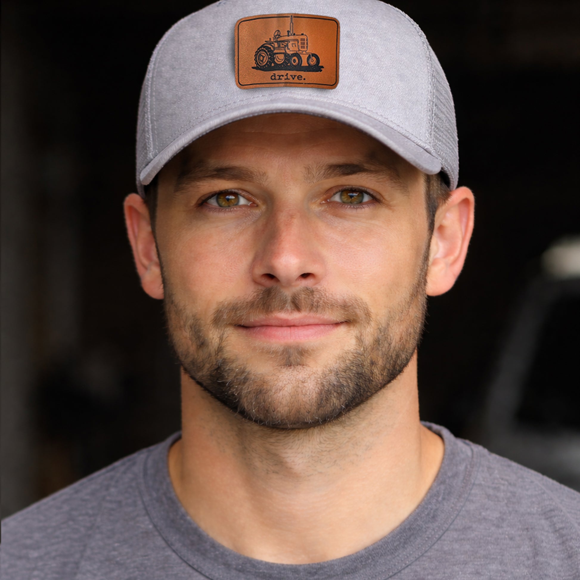 Top pick for farm stores, rural boutiques, and country gift shops—a high-quality adult trucker hat that sells year-round. One size fits all with an adjustable snapback, structured front, and breathable mesh back for all-day comfort. Comes in four versatile colors: Heather Gray, Charcoal Gray, Army Green, and Black. Durable, premium build for everyday wear and easy gifting. Finished with a faux leather patch featuring our “Drive” tractor design—perfect for ag-loving families.