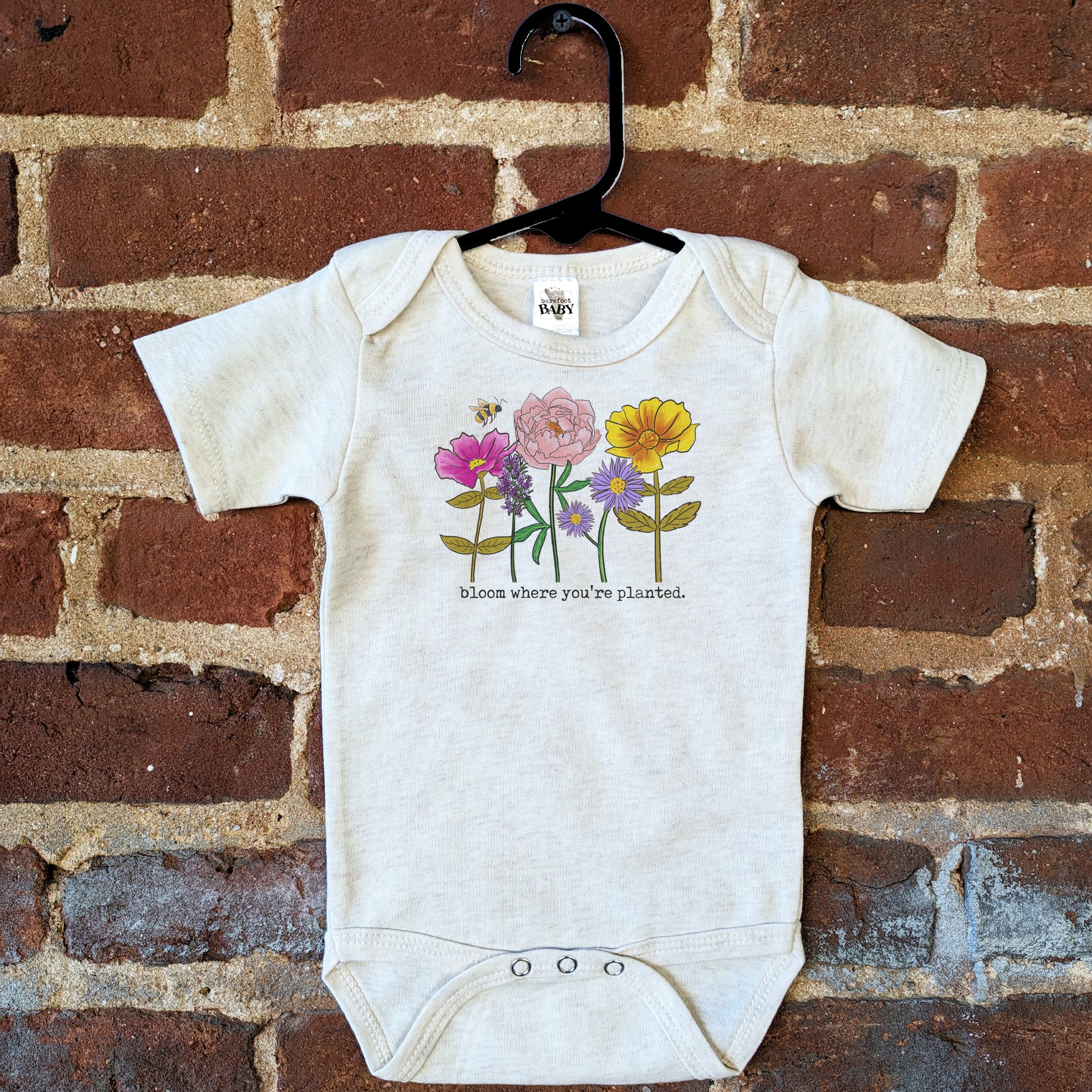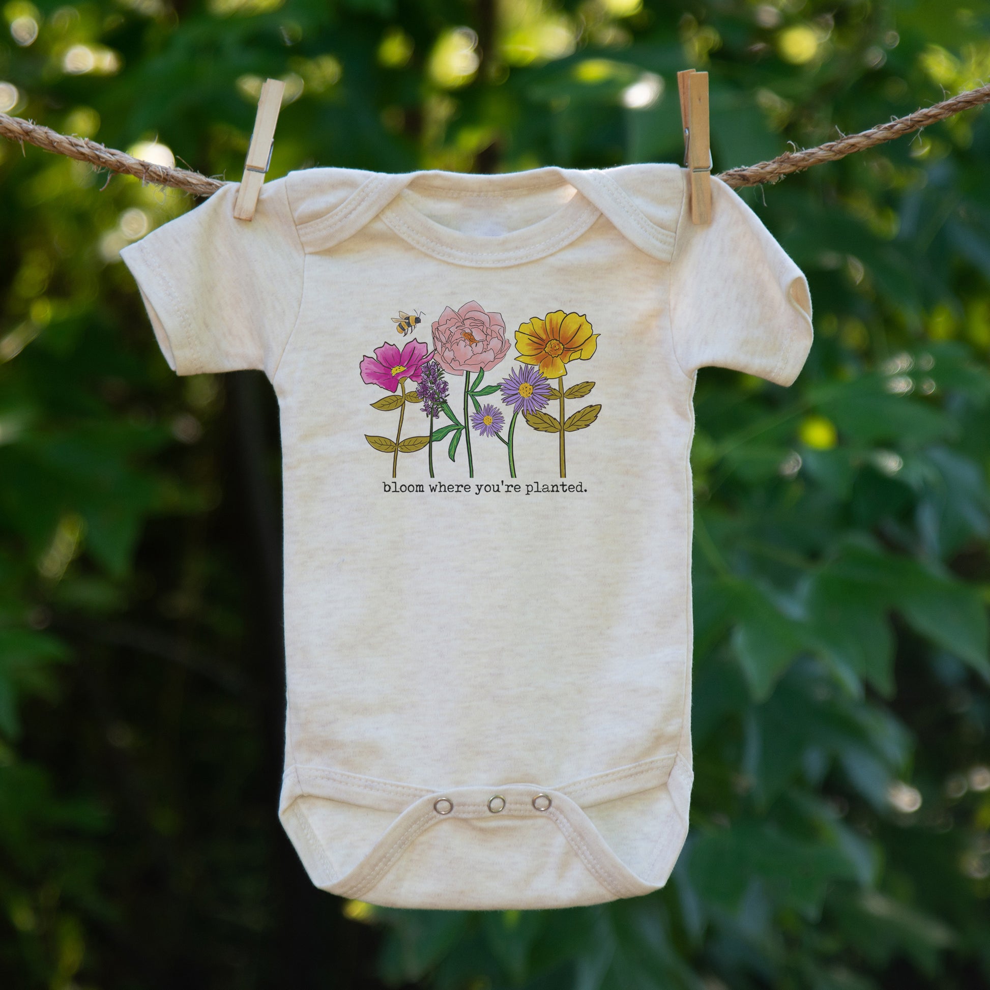 "Bloom where you're planted" Baby Wildflower Kids Flower Nature Body Suit