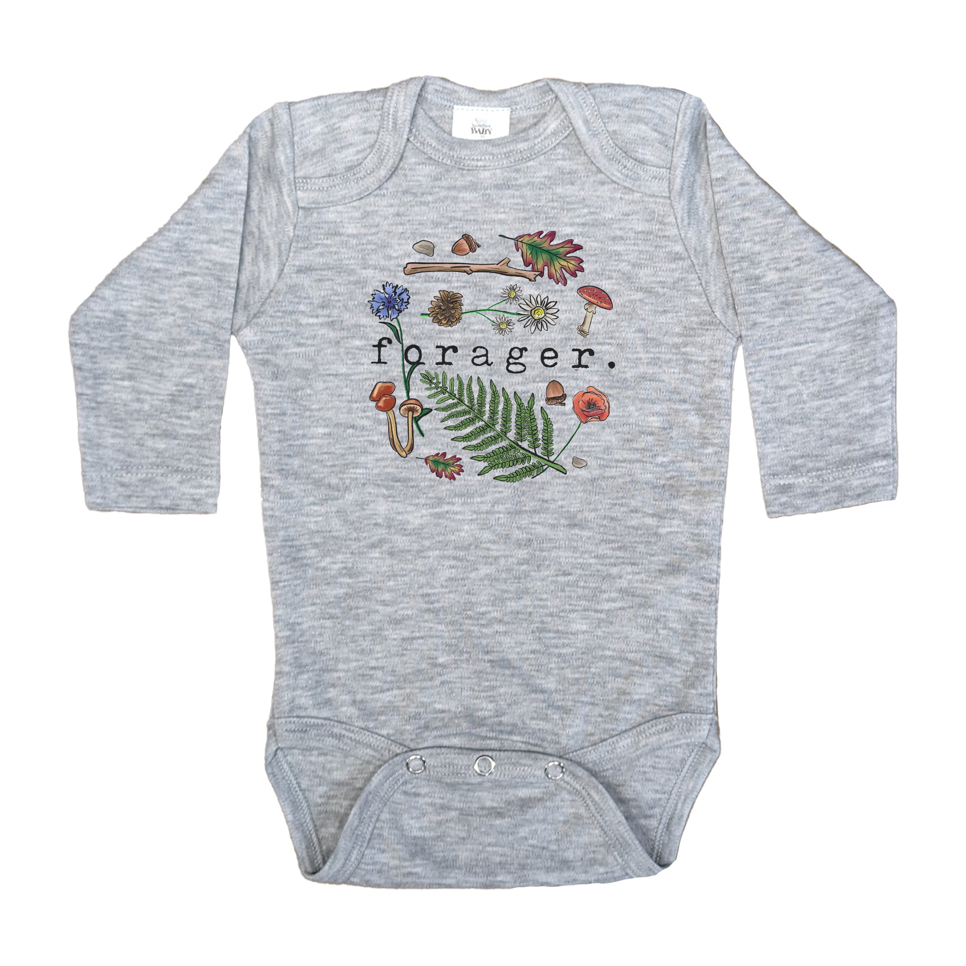 Embrace nature's wonders with our "Forager" body suit! Ultra-soft and adorned with original artwork like acorns and fern leaves, this outfit is a delightful addition for nature-loving babies. Elevate your collection with a touch of the great outdoors, perfect for young explorers!