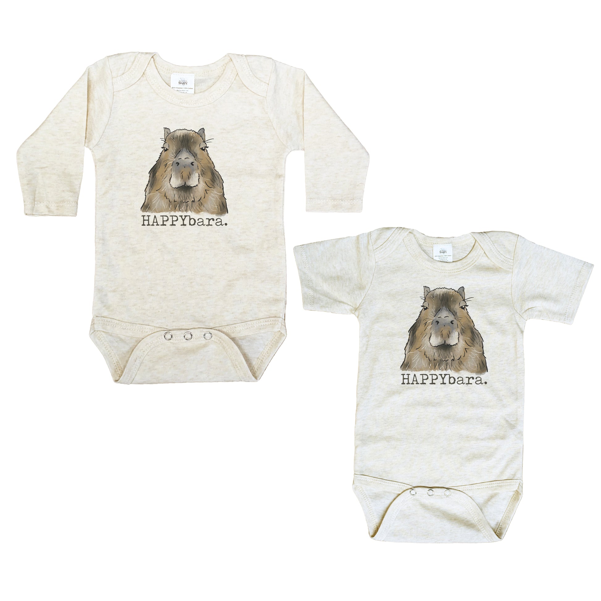 "HAPPYbara" Capybara Quirky Beige Baby Body Suit