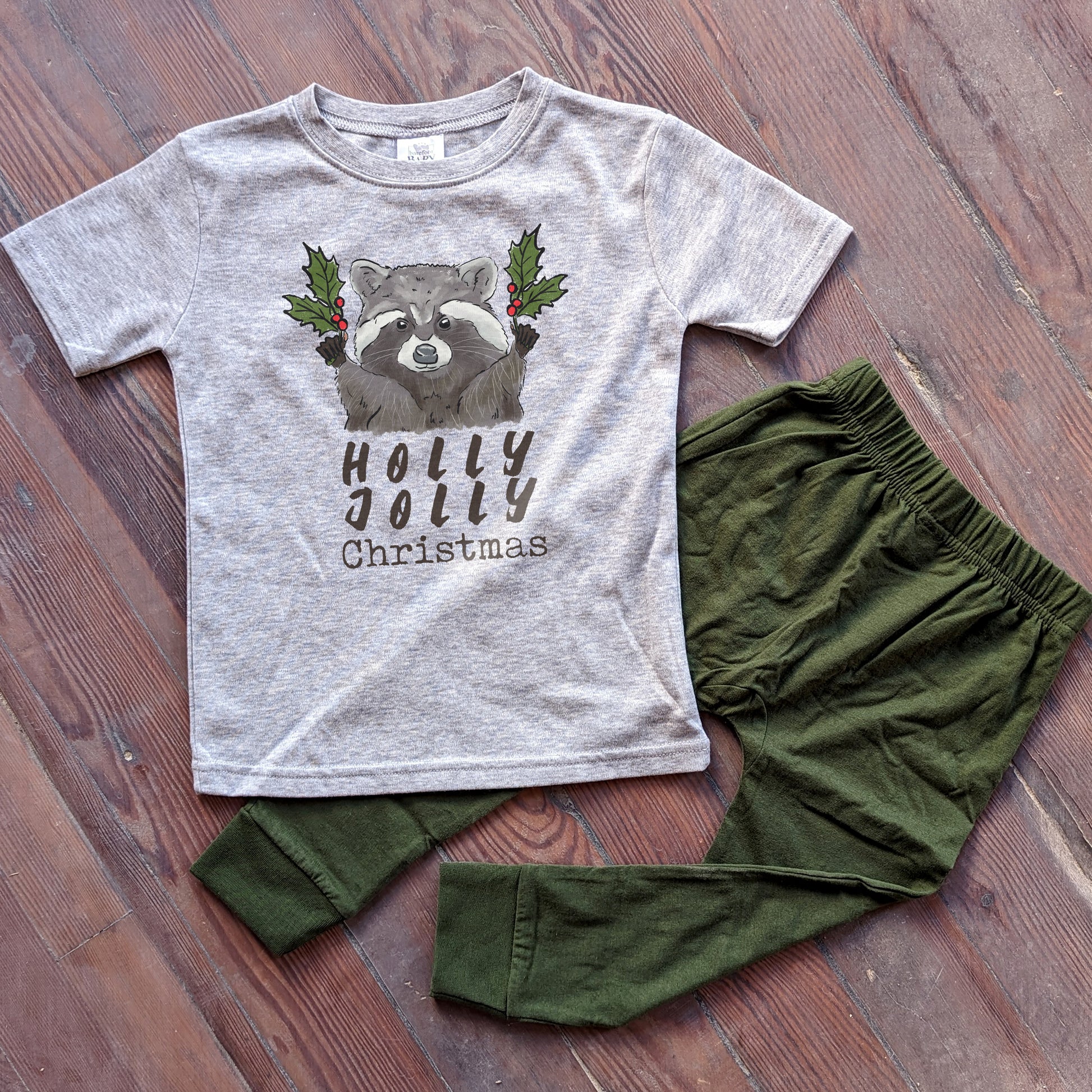 "Have a Holly Jolly Christmas" Woodland Raccoon Holiday Kid Tee