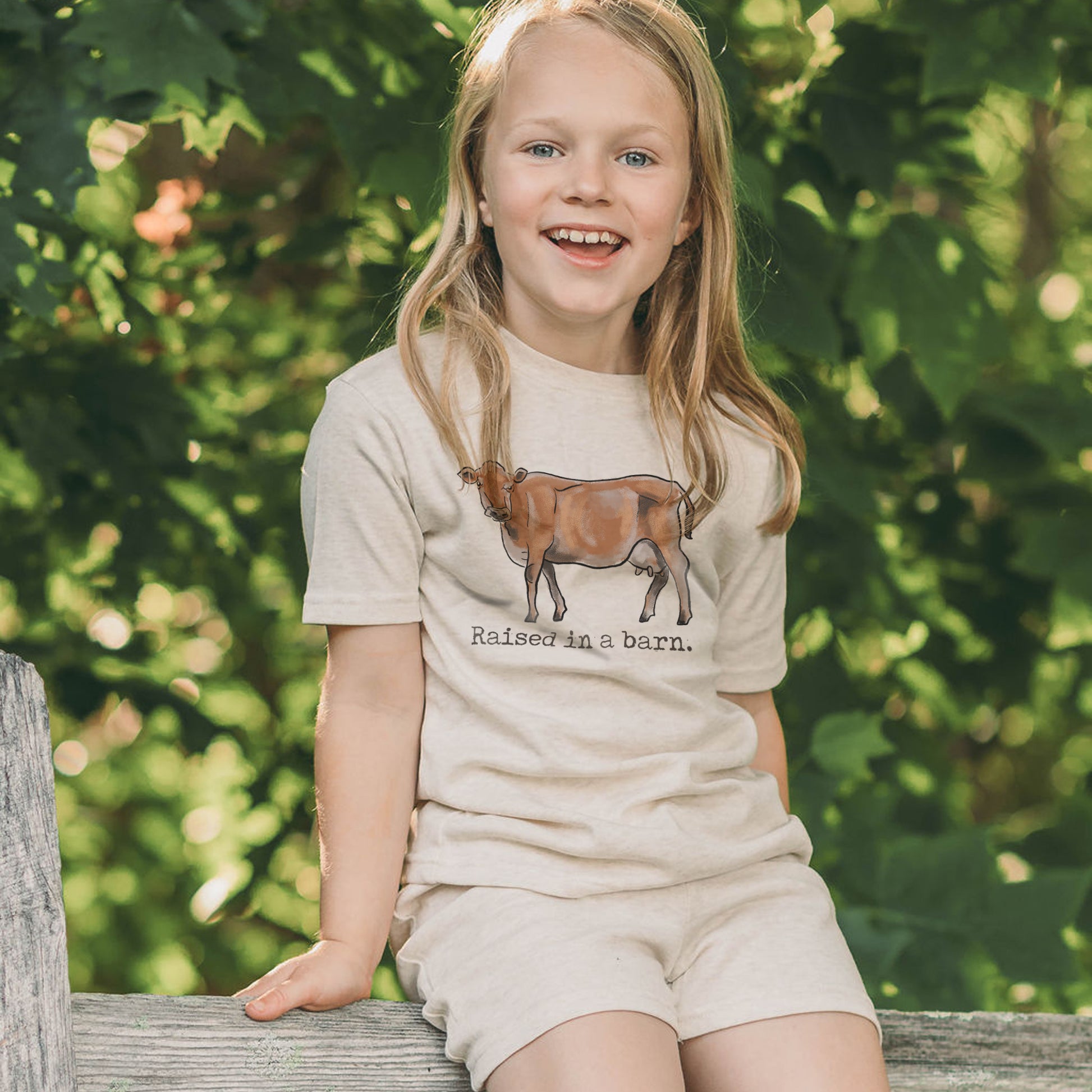 "Raised in a barn" Short Sleeve Shirt: Celebrate the joys of the farm with our exclusive short sleeve shirt featuring our best-selling "Raised in a barn." cow design. This whimsical companion is perfect for kids who love to embrace the countryside's wonders.