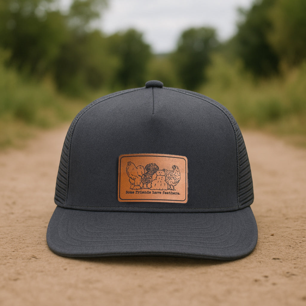The vegan leather patch showcases our original “Some Friends Have Feathers” design, adding a playful nod to farm friends both big and small—perfect for kids growing up around animals or simply fascinated by them.